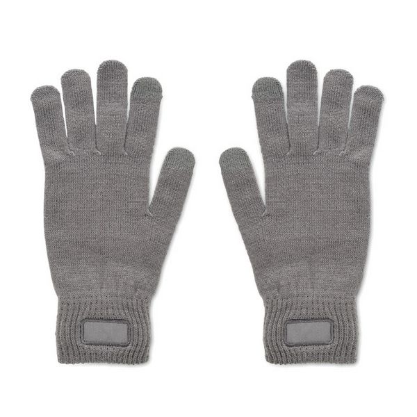 Pletene rukavice od mekog rastezljivog RPET poliestera s ukrasnom zakrpom.