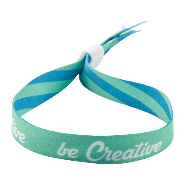 Poliesterska festivalska narukvica izrađena po mjeri s plastičnom sigurnosnom bravom. S grafikom otisnutom sublimacijom s obje strane. MOQ: 100 kom.