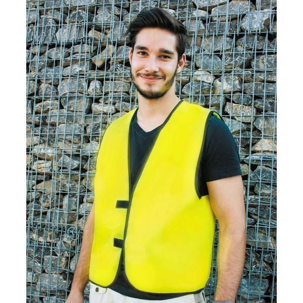 Obložen crnim poliesterskim rubom, podesive veličine s 2 čičak zatvarača, veliko područje ispisa na poleđini, žuto i narančasto certificirano prema EN 17353:2020 tip A (dnevno svjetlo)Materijal: