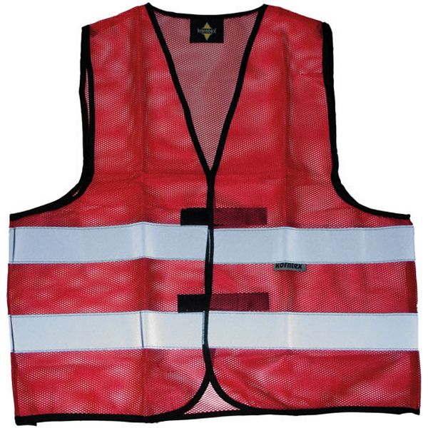 Vrlo prozračan, obrubljen crnim poliesterskim rubom, podesive veličine s 2 čičak kopče, savršen za vruća radna okruženja, dvije reflektirajuće trake širine 5 cm oko tijela (bez zaštitne funkcije)Materijal: