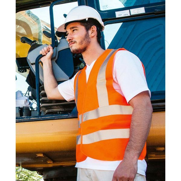Podesiva veličina s 2 čičak zatvarača, žuta i narančasta odgovaraju EN ISO 20471, sve ostale boje odgovaraju EN 17353 tip B3 (tamno), narančasta također odgovara GO/RT 3279, četiri reflektirajuće trake širine 5 cmMaterijal: