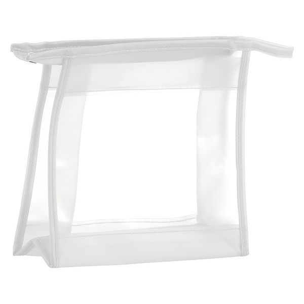Zipped cosmetic bag with transparent window, made of PVC.