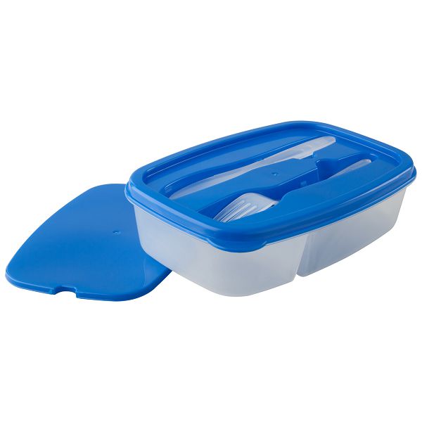 Plastic lunch box with coloured top, 2 compartments and cutlery (knife and fork), 1000 ml.Veličina proizvoda: