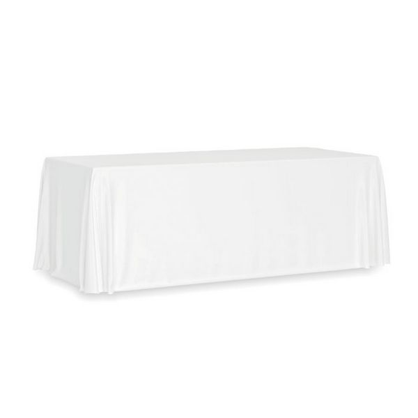 Veliki pravokutni stolnjak od poliestera 180 gr/m². Stolnjak za prezentacije tvrtki, sajmove, izložbe, konferencije, marketinške događaje, bankete ili zabave. Veličina: 280x210 cm.