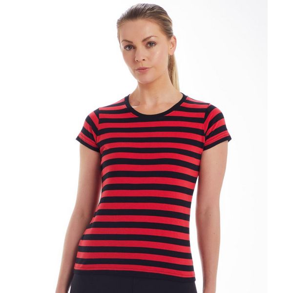 Uzak okrugli izrez od rebrastog pletiva, pojačana traka za vrat, rukavi s kapom, dupli šavovi na rukavima i porubu, pruge obojene pređom, mogućnost skidanja etikete, etiketa neutralne veličine, perivo na 40°Materijal: