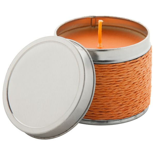 Scented candle in metal tin box covered with string.Veličina proizvoda: