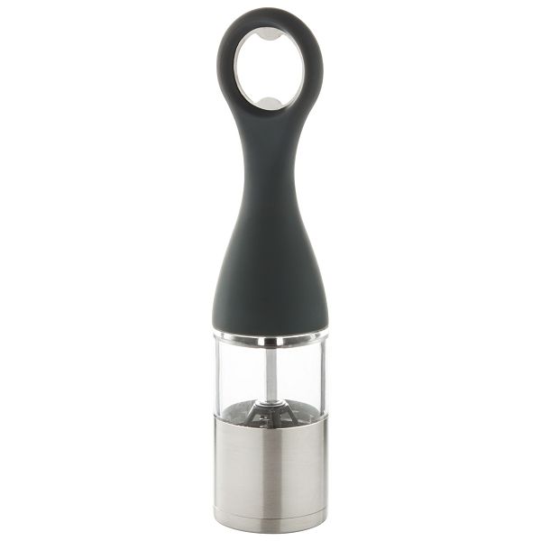 Manual salt and pepper mill with bottle opener. With plastic and stainless steel housing.Veličina proizvoda: