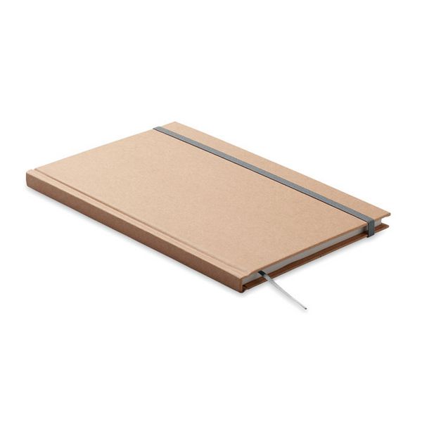 Bilježnica A5 formata s tvrdim koricama od recikliranog kartona. Uvezana u kutiju. 200 stranica od recikliranog papira s linijama (100 listova/80 g/m²). Elastična traka za zatvaranje i vrpca za označavanje stranica. Proizvedeno u EU.