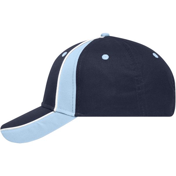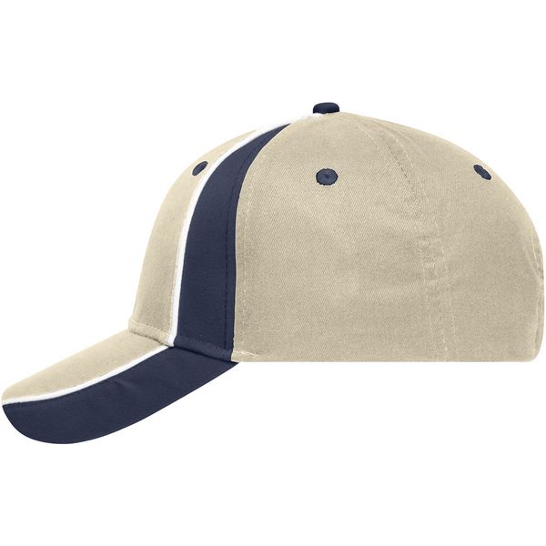Podstavljena traka za znojenje od satena, laminirane prednje ploče, 6 izvezenih ventilacijskih otvora u kontrastnoj boji, čičak kopčaMaterijal: