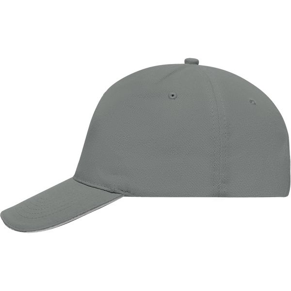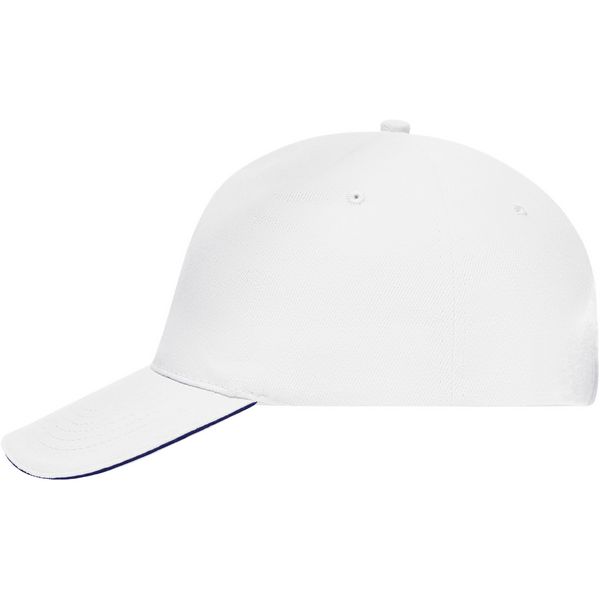 Visokokvalitetna kapa s 5 panela sa sendvičem u kontrastnoj boji, 6 ukrasnih šavova na vrhu, podstavljena traka za znojnicu od satena, laminirana prednja strana, 4 izvezena ventilacijska otvora, čičak kopča
