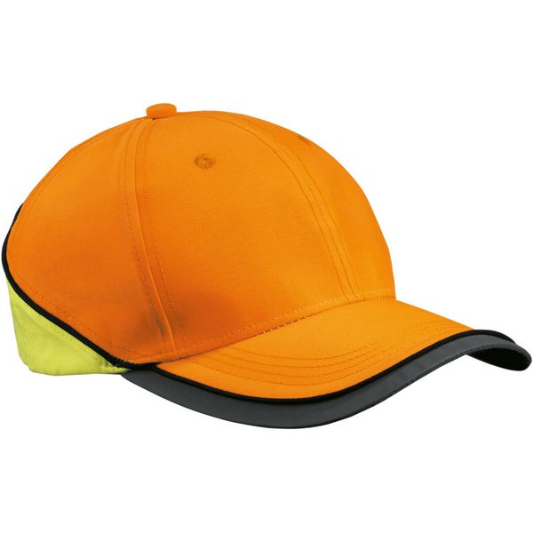 Funkcionalna kapa sa 6 ploča u upečatljivim neonskim bojama, 4 ukrasna šava na šiltu, kontrastni obrub oko kape, laminirane prednje plohe, 2 izvezena ventilacijska otvora, reflektirajući čičak kopča i rub oko šiljka (bez zaštitne funkcije)Materijal: