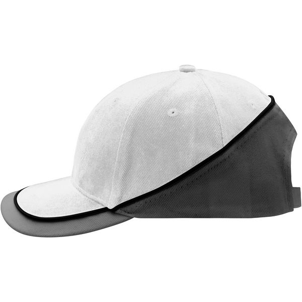 Visokokvalitetna kapa u nekoliko boja, razrađeni kontrastni umetci i obrubi posvuda, podstavljena traka za znojnicu od satena, laminirane prednje ploče, 6 izvezenih otvora za ventilaciju, mat srebrni regulator kopče s metalnom ušicomMaterijal: