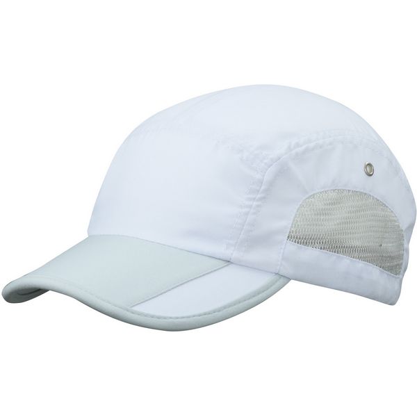 Funkcionalna vrlo lagana kapa od 5 ploča od mekanog mikrovlakana, otporna na vjetar i vodu, bočni mrežasti umetci, kontrastni rub i dodatak na vrhu, frotirna znojnica, čičak kopča, po jedna metalna ušica sa svake straneMaterijal: