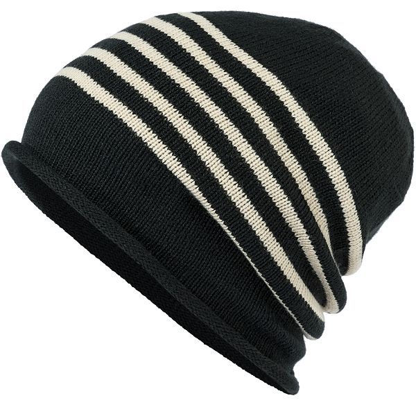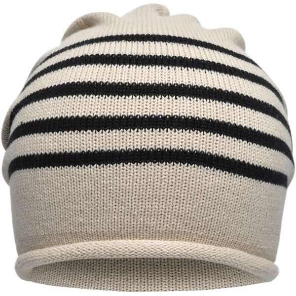 Pletena kapa, zarolani rub, pruge u kontrastnoj boji, mekan na dodirMaterijal: