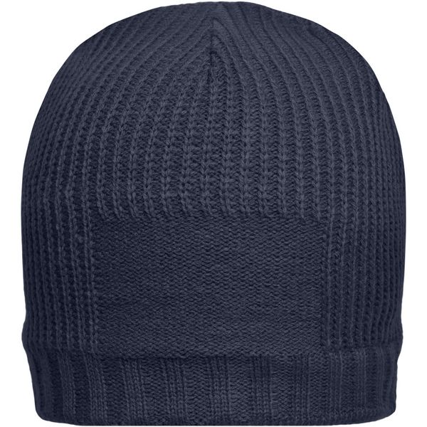 Rebrasta pletena kapa, jednobojna pletena površina sprijeda 8x6 cm za vez, iznutra: traka od flisaMaterijal: