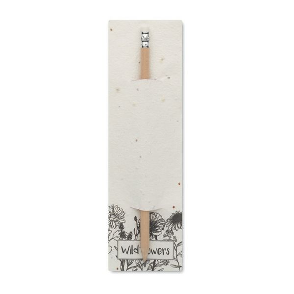 Olovka od prirodnog drva s gumicom. Dolazi u vrećici od papira za sjeme (poljsko cvijeće).