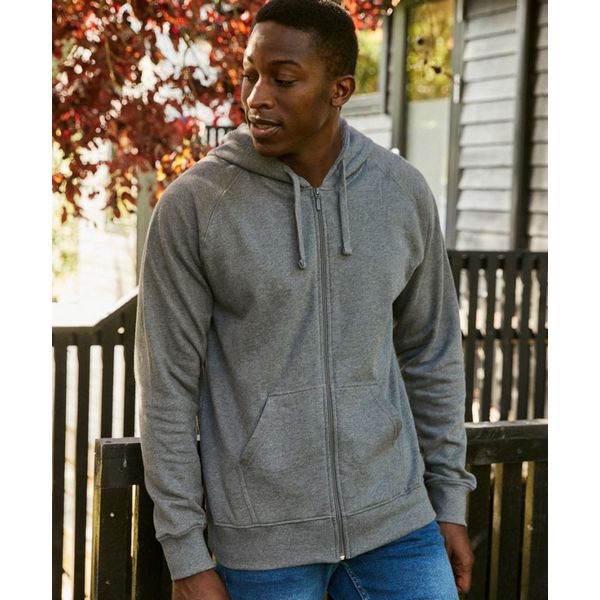 Dvoslojna kapuljača s uzicom, trakom za oko, raglan rukavima, rebrastim manšetama na rukavima i porubu, YKK patentnim zatvaračem, klokanovim džepom, grubo iznutra