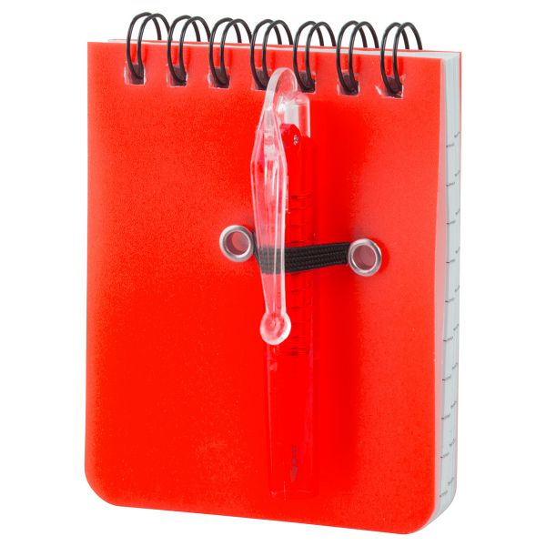 60 sheets spiral notebook with plastic cover and ballpoint pen. With blue refill.Veličina proizvoda: