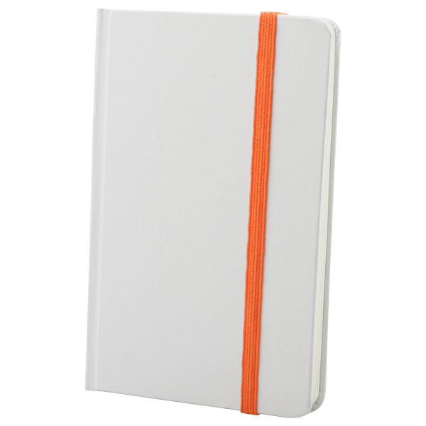 White carton covered notebook with 80 blank sheets and coloured rubber strap.Veličina proizvoda: