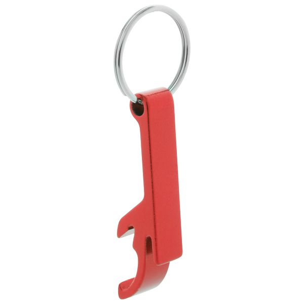 Aluminium bottle and can opener with keyring.
