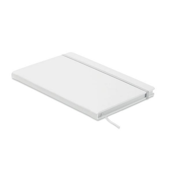 Bilježnica A5 formata s tvrdim PU koricama. Uvezana. 200 liniranih stranica (100 listova) od recikliranog papira (80 g/m²). Odgovarajuća elastična traka za zatvaranje i vrpca za označavanje stranica. Proizvedeno u EU.