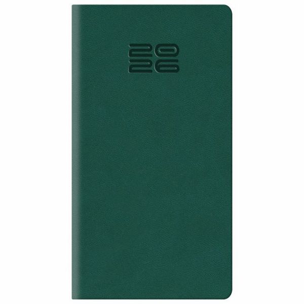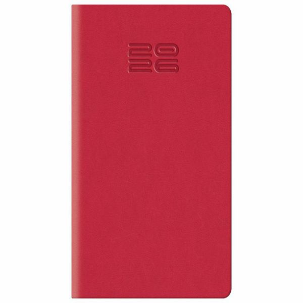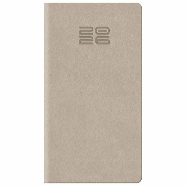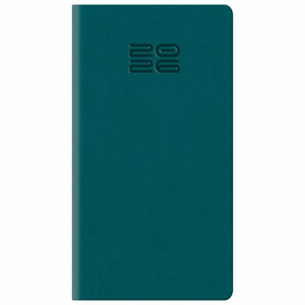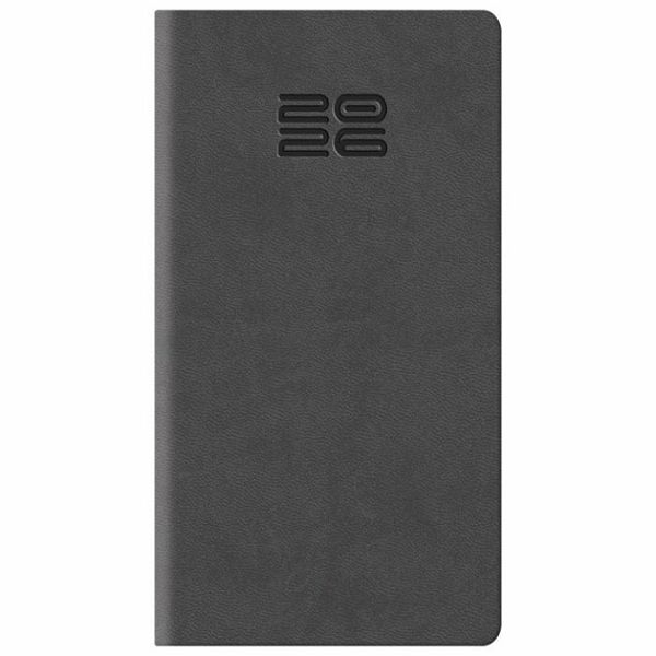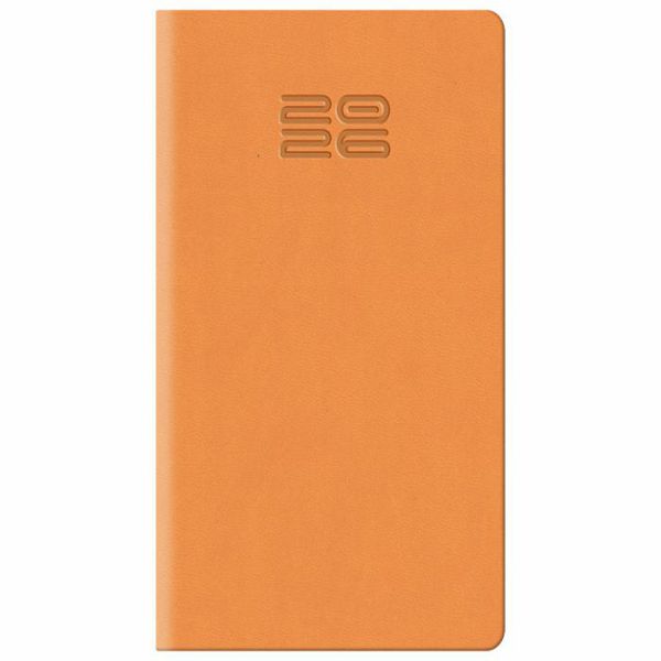 dimenzija: 80x150 mm; jedan tjedan na dvije stranice; sa adresarom; tekst na: engleskom, njemackom, francuskom i talijanskom; korica je izradena od koagulatnog materijala koji je pogodan za: sitotisak, suhi žig, foliotisak zlatni/srebrni, foliotisak u boji i digitalni tisak