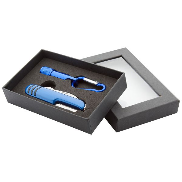 Poklon set džepni nožić, baterija i karabiner Sufli, plava