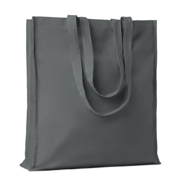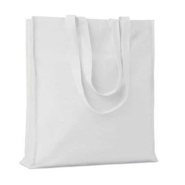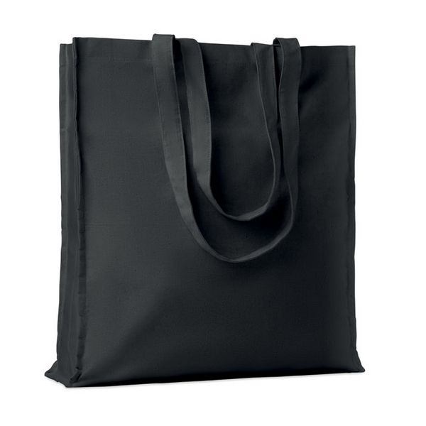 Pamučna torba za kupovinu s dugim ručkama i umetkom. 140 gr/m². Ovaj proizvod ima OEKO-TEX® STANDARD 100 certifikat.