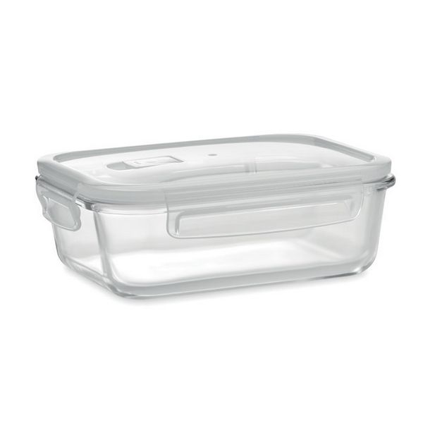 Kutija za ručak od visoko borosilikatnog stakla s hermetički zatvorenim poklopcem od PP-a. Pogodno za mikrovalnu pećnicu. Kapacitet 900 ml.