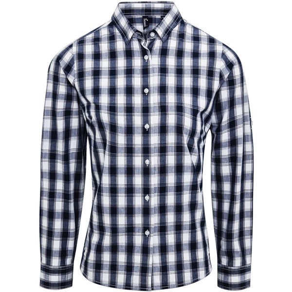Usko skrojen model, uski ovratnik, rukavi na zavrtanje s gumbom i jezičkom za kopčanje na nadlaktici, manžete s gumbima, karirani dizajn, perivo na 40°Materijal: