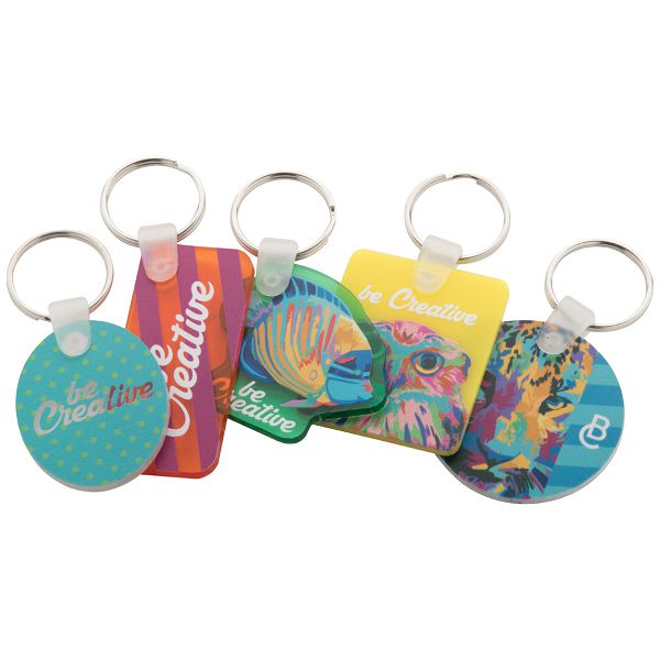 Custom made, acrylic keyring with full colour printing. Produced in custom shape - maximum size: 45x45 mm. Price includes UV LED printing on one side. MOQ: 250 pcs.Veličina proizvoda: