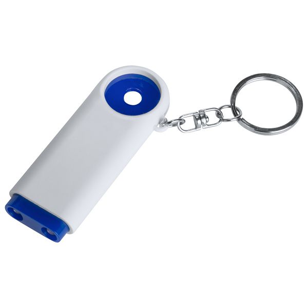 Plastic keyring with shopping trolley coin and 2 LED flashlight. With button cell batteries.Veličina proizvoda: