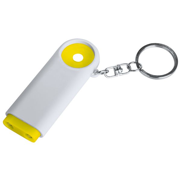 Plastic keyring with shopping trolley coin and 2 LED flashlight. With button cell batteries.Veličina proizvoda: