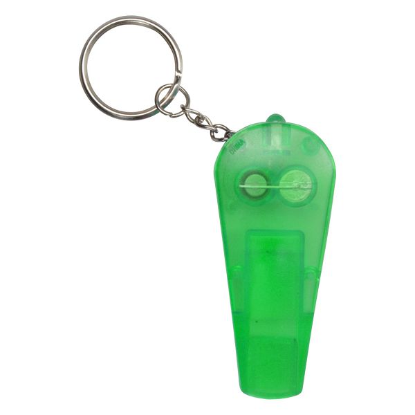 Transparent coloured plastic whistle with keyring and mini flashlight. With button cell battery.Veličina proizvoda: