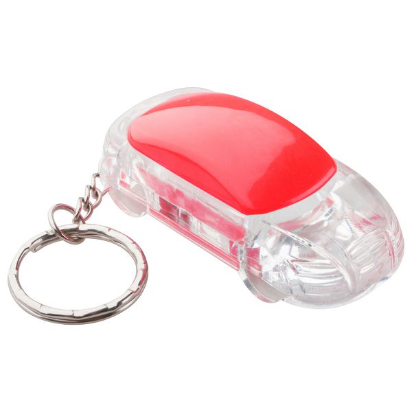 Car shaped plastic keyring with white LED flashlight and metal ring. With button cell battery.Veličina proizvoda: