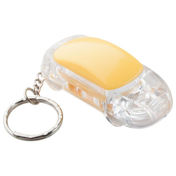 Car shaped plastic keyring with white LED flashlight and metal ring. With button cell battery.Veličina proizvoda: