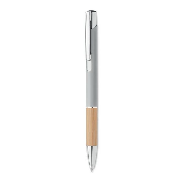 Aluminijska olovka s gumbom i bambusovim hvatištem. Plava tinta.