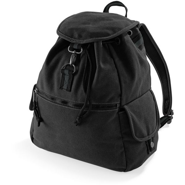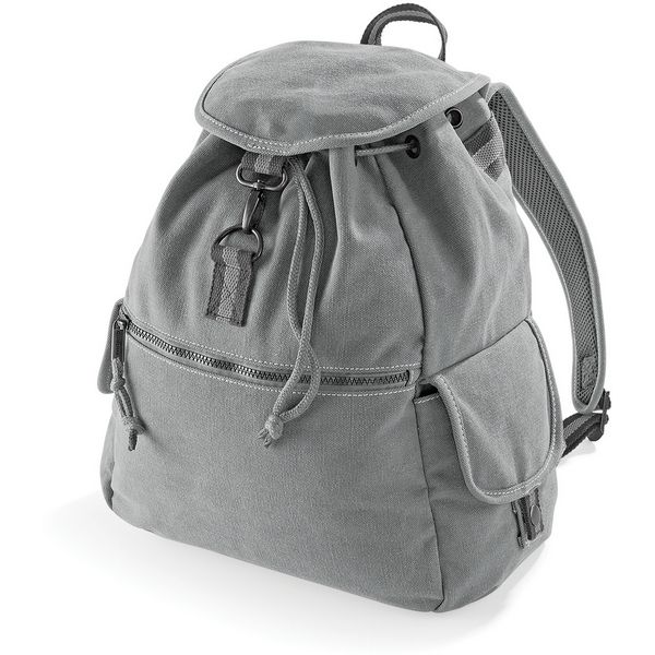 Ručka, podesive i podstavljene naramenice, podstavljena baza, prednji džep s patentnim zatvaračem, unutarnji džep s patentnim zatvaračem, bočni džepovi, vezica s čepom iznutra, preklop s jastogom, kapacitet: 18l, veličina: 30x36x16cm
