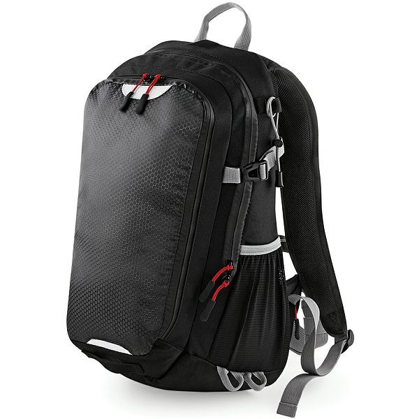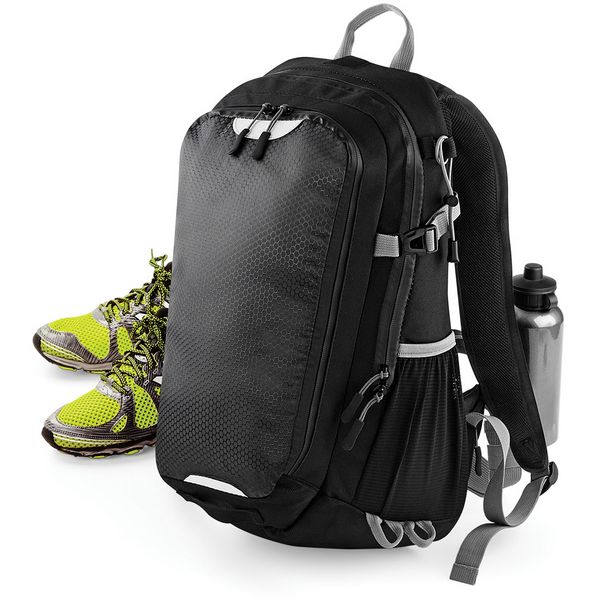 Ručka, podesive naramenice za prsa i bokove, podesive i podstavljene naramenice, prednji džep s patentnim zatvaračem, bočni džepovi od elastične mreže, kompatibilan s hidratacijskim mjehurom, unutarnji mrežasti džep, ergonomska prozračna podstavljena mrežasta stražnja ploča, za prijenosna računala do maks. Materijal: