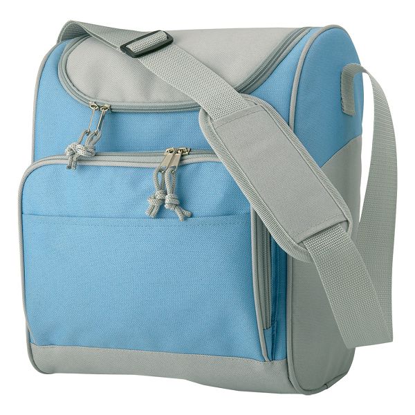Zipped cooler bag with adjustable shoulder strap and zipped front pocket. Material: 600D polyester.Veličina proizvoda: