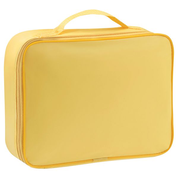 Zipped cooler bag with meshed pocket. Material: PVC.