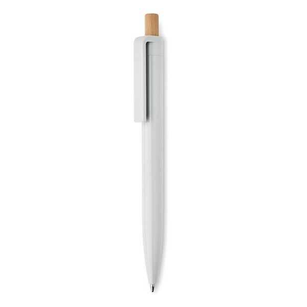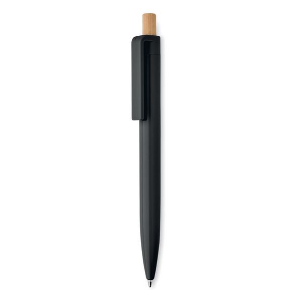 Kemijska olovka od recikliranog ABS-a s bambusovim gumbom. Plava tinta.