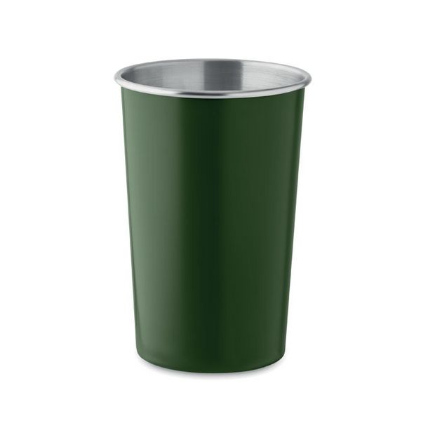 Šalica od recikliranog nehrđajućeg čelika za višekratnu upotrebu (90% recikliranog nehrđajućeg čelika i 10% nehrđajućeg čelika). Kapacitet: 350 ml. Budući da je ovo šalica s jednom stijenkom, i dalje može doći do prijenosa topline.