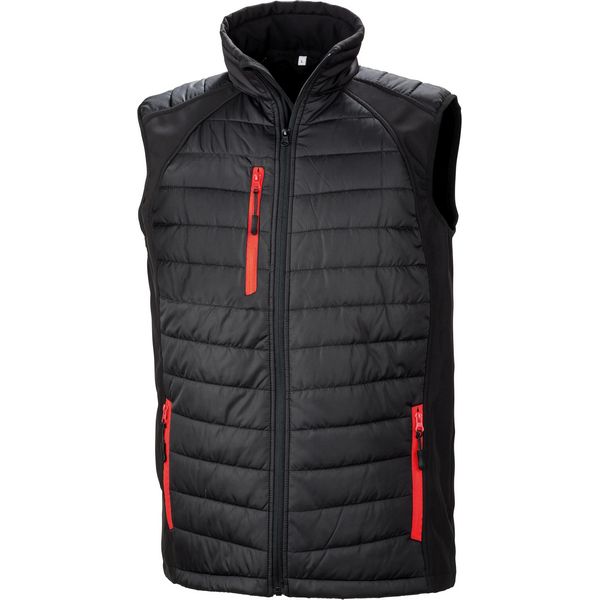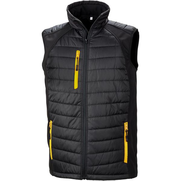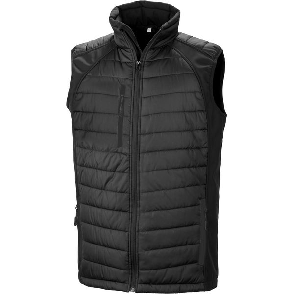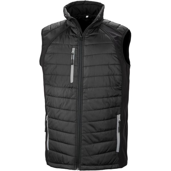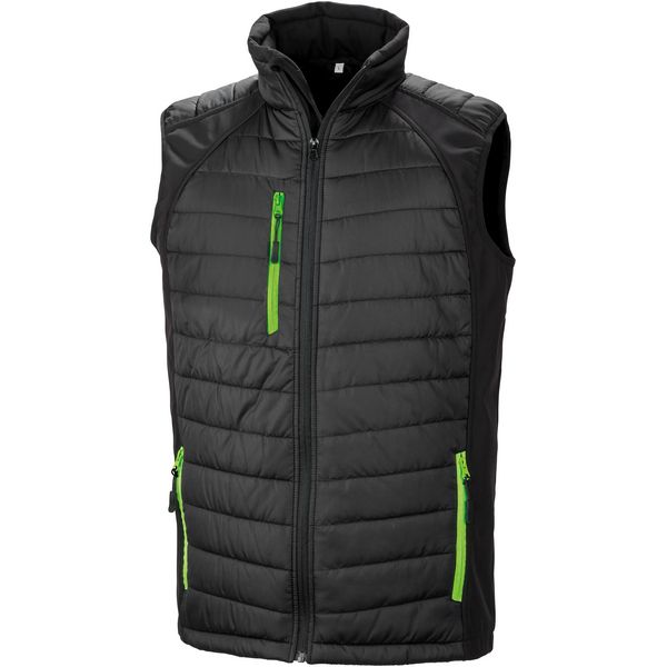Vodootporan, podstavljeni ovratnik, obrubljeni otvori za ruke, YKK patentni zatvarač sa štitnikom za bradu, kontrastni detalji na prsima i bočnim džepovima, pristup ukrasima na lijevom prsima, petlja za vješanje, mješavina materijala od prošivenog podstavljenog poliestera i softshell materijala, podstavljeno prošiveno tijelo Materijal: