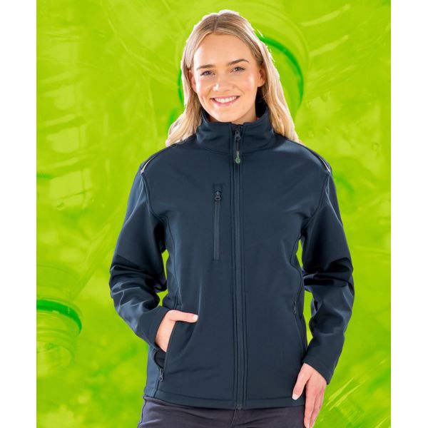 300 g/m², izvana: 100% TOPGREEN® reciklirani poliester, srednji sloj: TPU membrana, vodootporan (8000 mm vodenog stupca), otporan na vjetar, prozračan (1000 g/m² u 24h), iznutra: 100% reciklirani poliester mikroflis