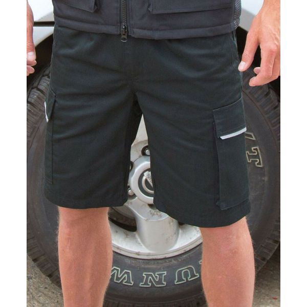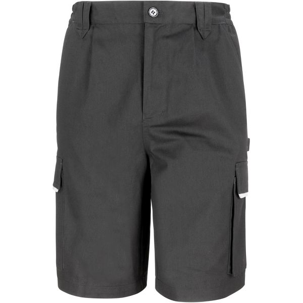 Široko kojen model, elastični pojas, omče za remen, patentni zatvarač sprijeda s gumbom, kargo džep s kopčom na čičak, duboki bočni džepovi, džep za mobitel, džep za ravnalo, dvostruki šavovi, petlja za čekić, reflektirajuće trake na džepovima (bez zaštitne funkcije)Materijal: