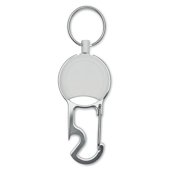 Uvlačivi držač za značku od ABS-a s kopčom, privjeskom za ključeve i otvaračem za boce.