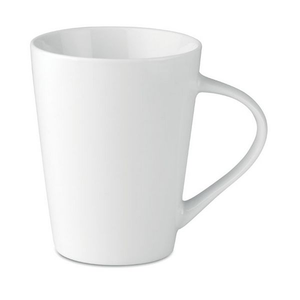 Porculanska konusna šalica zapremnine 250 ml. Pakiranje za rinfuzu. Tampon tisak nije prikladan za pranje u perilici posuđa.