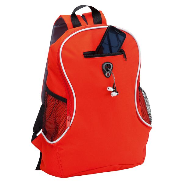 600D polyester backpack with adjustable shoulder straps. With earphone outlet, mesh side pockets, zipped mobile pocket and main compartment.Veličina proizvoda: