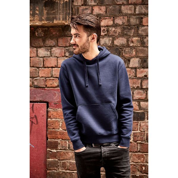 Ravni kroj, dvoslojna kapuljača s užetom, ravna vezica za zatezanje, manšete i porub, ležerne rebraste manšete na rukavima i porubu, šavovi za pokrivanje na otvorima za ruke, šavovi na ramenima okrenuti sprijeda, 3-nitna kvaliteta znojenja, fina mekana površina, vodilica za slušaliceMaterijal: